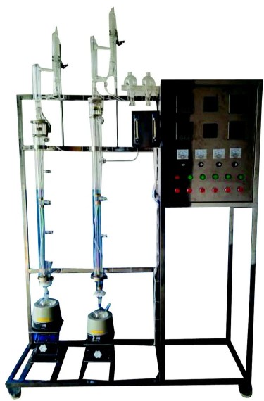 1、雙玻璃填料塔,塔體直徑φ20mm,塔1:高1400mm,塔2:高1200mm。不銹鋼φ2×2mmθ網(wǎng)環(huán)填料,塔體外壁二段透明導(dǎo)電膜加熱保溫,塔釜容積500ml。雙塔可獨立操作。