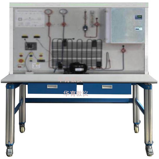 實訓臺提供1/9匹冰箱制冷壓縮機QD60(85W 0.65A R12)、直冷式蒸發(fā)器(鋁復合板吹脹式蒸發(fā)器及下蒸發(fā)器、鋼絲式冷凝器(17檔)、冷凝風扇照明燈及門開關(guān)雙金屬片熱保護繼電器、PTC啟動器、重錘啟動器、毛細管。