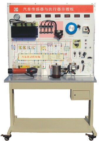 發(fā)動機電控單元、防盜控制單元、防盜鑰匙、發(fā)動機各類傳感器、發(fā)動機各類執(zhí)行器、檢測端子、故障設置系統(tǒng)、大容量蓄電池或12V開關電源、大型彩色噴繪電路原理圖、控制面板、可移動臺架、使用說明書及任務驅動式實訓指導書等。