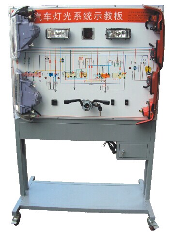 本產(chǎn)品選用原車燈光系統(tǒng)實(shí)物,展示汽車燈光系統(tǒng)的結(jié)構(gòu)與原理;面板上繪有完整的燈光系統(tǒng)的電路圖,設(shè)置有檢測端子,可通過儀器儀表檢測各種信號參數(shù)如電壓、電阻、頻率等。