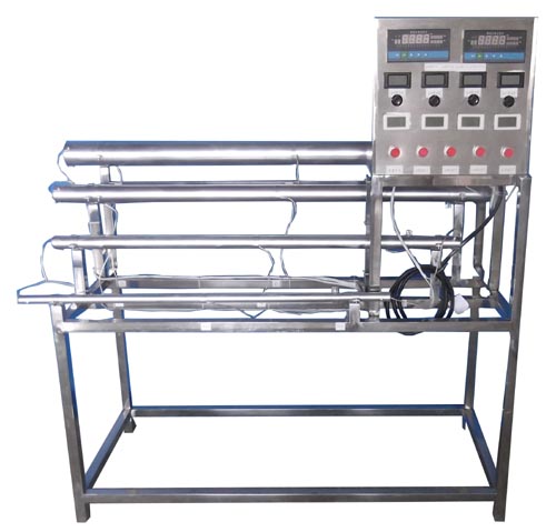 不同長度和直徑的電鍍紫銅管四根,管內(nèi)設置加熱器,固體調(diào)壓模塊無機調(diào)節(jié)加熱,測溫傳感器,電功率測試數(shù)顯儀表,萬能信號輸入巡檢儀顯示溫度,各管配有溫度控制儀表,不銹鋼臺架及控制屏等。注:數(shù)字II型增加帶標準信號的萬能信號輸入巡檢儀,增加帶標準信號的數(shù)顯電流表電壓表,軟件等。