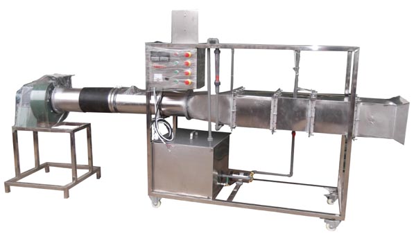 循環(huán)防腐水泵,轉(zhuǎn)子流量計(jì)、風(fēng)冷冷凝器,翅片管式換熱器,風(fēng)洞實(shí)驗(yàn)段,多翼式低噪音離心風(fēng)機(jī),自動(dòng)調(diào)節(jié)風(fēng)門,笛形管及差壓測風(fēng)速裝置,加熱由固體調(diào)壓模塊無級調(diào)節(jié),控制測試儀表箱,不銹鋼加熱水箱,8路萬能信號輸入巡檢儀顯示溫度、水和風(fēng)的阻力及風(fēng)速。注:數(shù)字型增加帶標(biāo)準(zhǔn)信號的多路萬能信號輸入巡檢儀,增加帶標(biāo)準(zhǔn)信號的數(shù)顯電流表電壓表,增加文丘里流量計(jì)配差壓傳感器測流量,配有數(shù)據(jù)采集,自動(dòng)數(shù)據(jù)分析處理功能的軟件等。